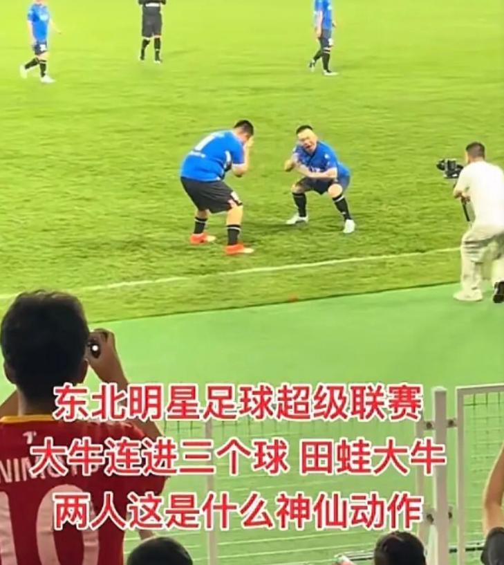 即便如此,他依然坚持踢完了全场,更令人意外的是,尽管体能不济,他却在比赛中贡献了一记助攻,帮助球队攻破对手球门,每当己方破门,赵大牛都激动不已,甚至会在镜头前即兴表演,他与另一位田姓明星球员几乎承包了整场比赛的“娱乐性”。